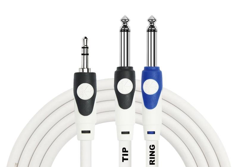 KIRLIN 2M PATCH LGY-362L /WH 3.5MM TRS PLUG ? 2×1/4? MONO PLUG (TIP/RING)