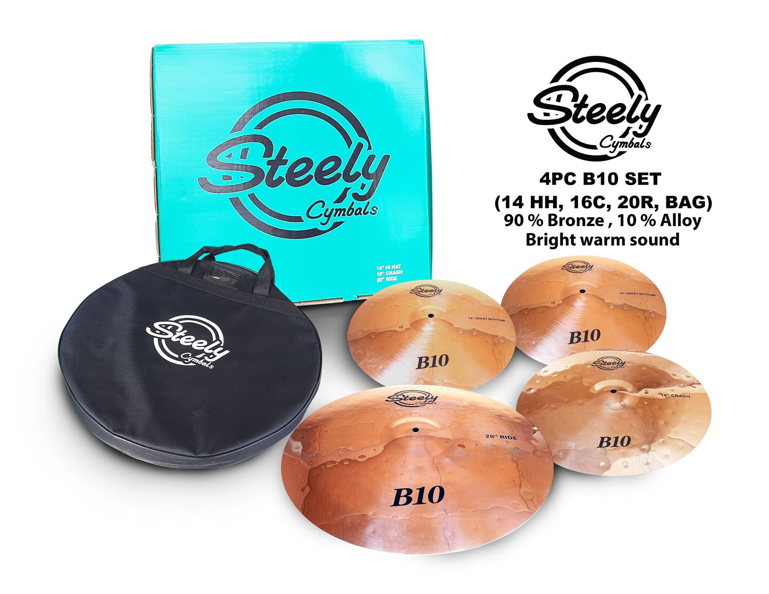 STEELY CYMBALS 4PC B10 SET (14HH, 16C, 20R, BAG)